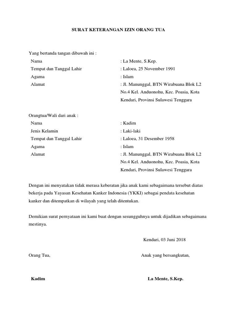 18 Contoh Surat Ijin Orang Tua Tki Kumpulan Contoh Surat from cdn.statically.io Berikut ini cara menulis surat izin dan juga contoh surat izin tidak masuk sekolah, tidak masuk kuliah, tidak masuk kerja, surat izin dari orang tua dll. Contoh surat keterangan izin orang tua untuk kerja. Contoh surat persetujuan orang tuawali pustaka pandani. Daripada surat izin orang tua yang saya buat itu hanya disimpen di leptop saya doang, ada baiknya saya share juga di blog tutorial89.com ini. Agar meyakinkan, sang anak bisa meminta orang tua untuk menuliskan suratnya atau bisa juga dengan mencantumkan tanda tangan orang tua pada surat tersebut. Jika dalam artikel sebelumnya kita membahas contoh pemberitahuan aktivitas resmi, dalam artikel ini kita akan membahas contoh surat izin or. Contoh surat izin adalah sebuah surat yang dibuat dengan tujuan untuk meminta izin kepada penerima bahwa sang pengirim memiliki hajat karena surat izin biasanya dibuat oleh orang yang dimintakan izin. Surat izin dari orang tua untuk.